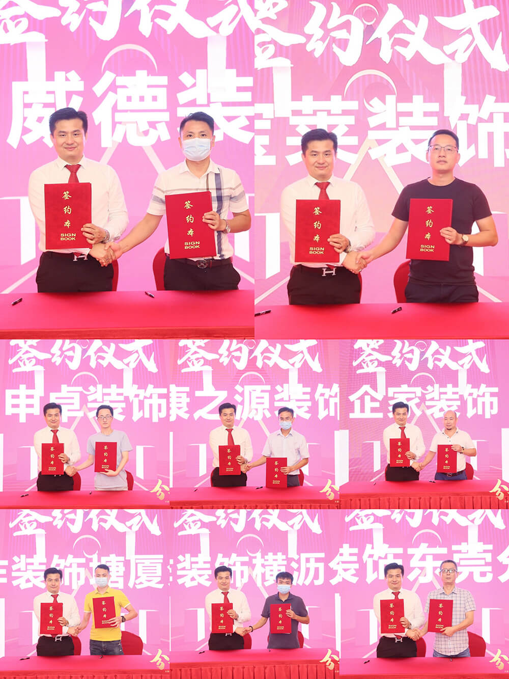 在隨后的簽約環節,各地經銷商們陸續簽約,加入了大自然家居東莞服務中心的大家庭。越來越多的合作伙伴在大自然大家居供應鏈的強大引力下,正迅速聚攏,整裝供應鏈建設又邁進了重要一步,簽約現場盛況空前、各經銷商均緊跟大自然供應鏈建設的趨勢和潮流,打開市場,合作共贏。