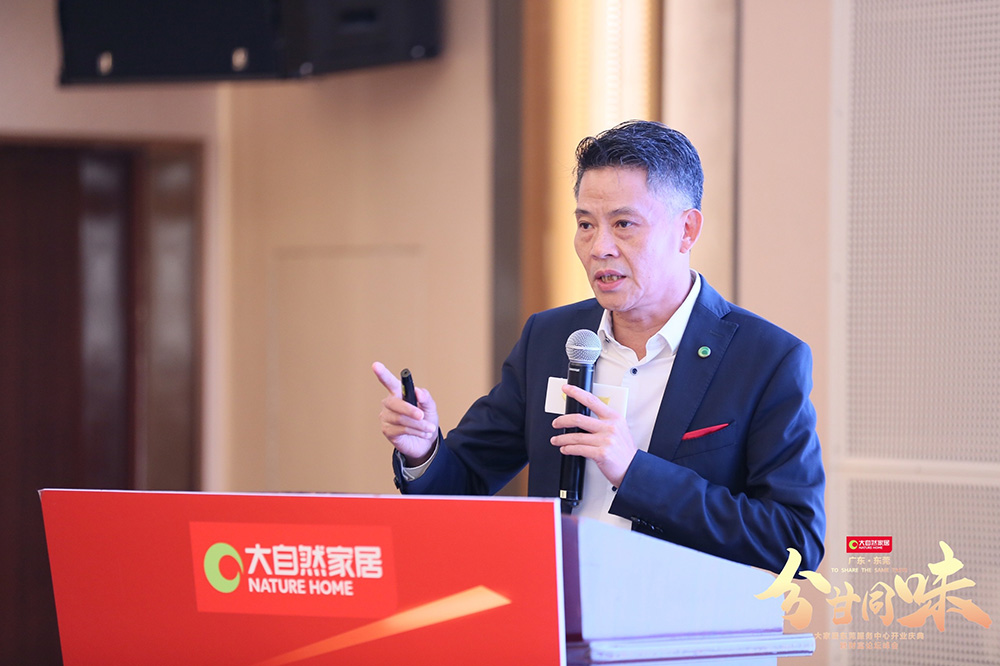 大自然家居董事長佘學彬先生現場進行開業致辭,并且為我們做行業趨勢及集團戰略的分享,在此分享中通過對大自然供應鏈的前期發展及未來規劃的了解,認知到大自然家居將以健康生活戰略主張出發,投入更多的時間,更廣的資源,更專注的態度全力打造大家居戰略。相信跟著佘董的規劃步伐,事業定會增增日上!