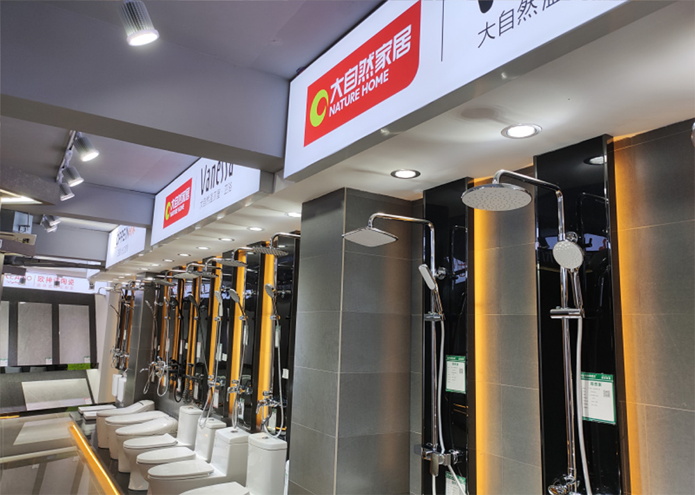 緣森泰裝飾位于中山市東區(qū)街道起灣道總部,已懸掛大自然家居和緣森泰裝飾“雙品牌”招牌。走進(jìn)展廳,木門、浴室柜、衛(wèi)浴、瓷磚等裝飾材料琳瑯盲目,品牌標(biāo)識(shí)統(tǒng)一為“大自然家居”。