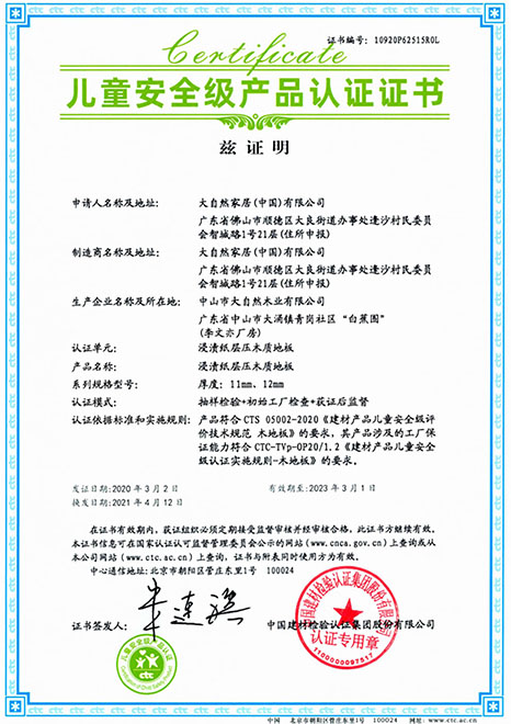 在準(zhǔn)確把握“環(huán)保、健康”的消費(fèi)需求之后,大自然家居研究院通過技術(shù)攻關(guān),開發(fā)出零醛智造技術(shù)。這也成為大自然強(qiáng)化地板的“健康密碼”,它采用高防潮高密度MDI環(huán)?;模a(chǎn)過程零醛添加,甲醛釋放限量采用新國標(biāo)最嚴(yán)苛的ENF級,產(chǎn)品獲得“兒童安全級認(rèn)證”。