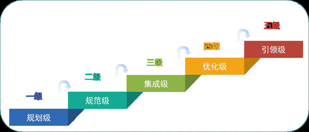 智能制造能力成熟度模型描述了企業(yè)實(shí)施智能制造要達(dá)到的階梯目標(biāo)和演進(jìn)路徑,提出了實(shí)現(xiàn)智能制造的核心要素、特征和要求,從人員、技術(shù)、資源、制造等要素維度,從低到高分五個(gè)成熟度等級(jí)綜合評(píng)價(jià)企業(yè)數(shù)字化、網(wǎng)絡(luò)化、智能化發(fā)展水平。目前國(guó)內(nèi)智能制造能力最高的企業(yè)為四級(jí)水平,全國(guó)暫無(wú)企業(yè)通過五級(jí)認(rèn)證。