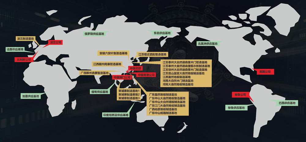 而在綠色健康的產品與品牌理念背后,是大自然家居強大的綠色產業鏈和生產基地在支撐。截至目前,大自然家居在全球擁有9大原材料供應基地以及6大集約化智造基地,已形成了從木地板、木門、櫥柜、衣柜和全屋智能家居定制到智慧家裝的現代家居全產業鏈。