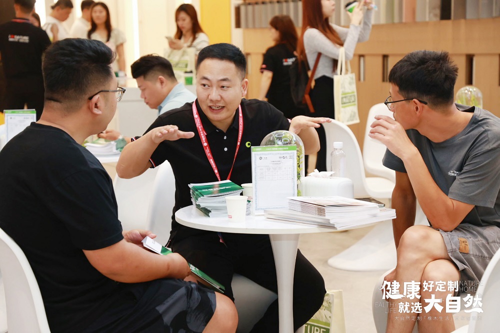 建博會期間,大自然家居攜500+㎡「橡木生活」意象館 | 地門墻柜一體健康整家定制形象亮相,廣受好評。現場人氣超預期火爆,超額實現招商目標。