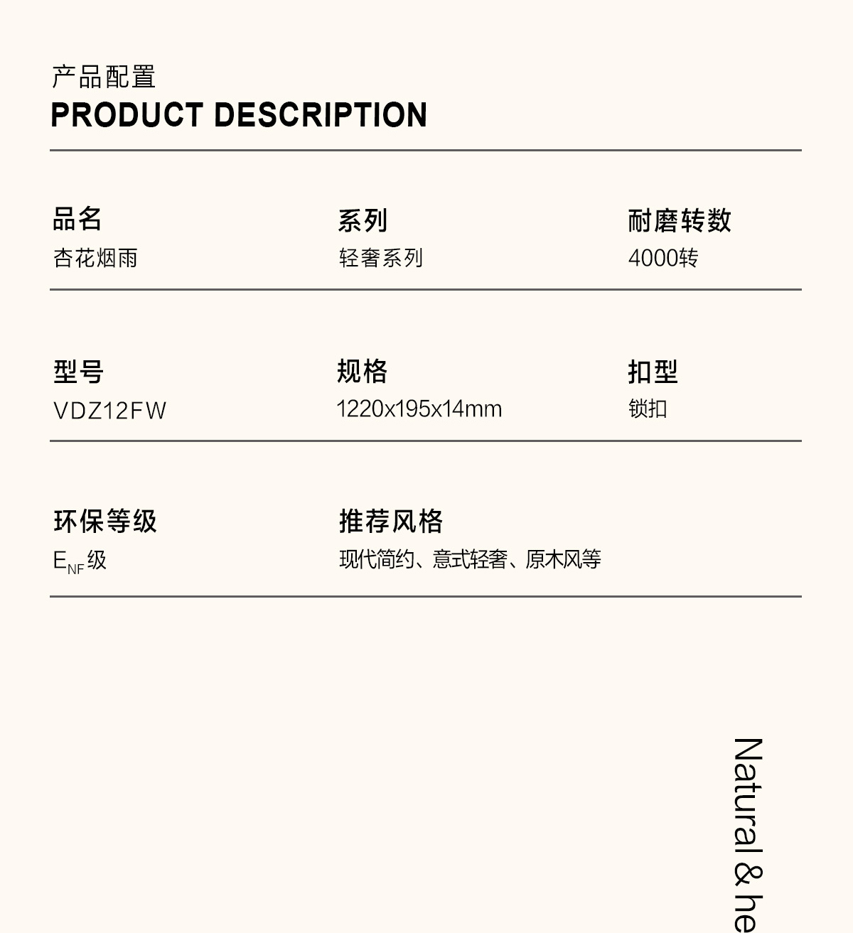產品名稱/型號 杏花煙雨VDZ12FW