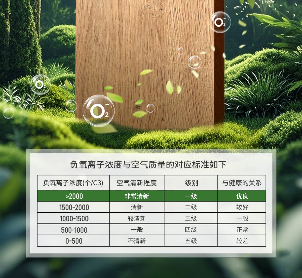 誘發(fā)空氣負離子量 比基礎環(huán)境提高10倍+