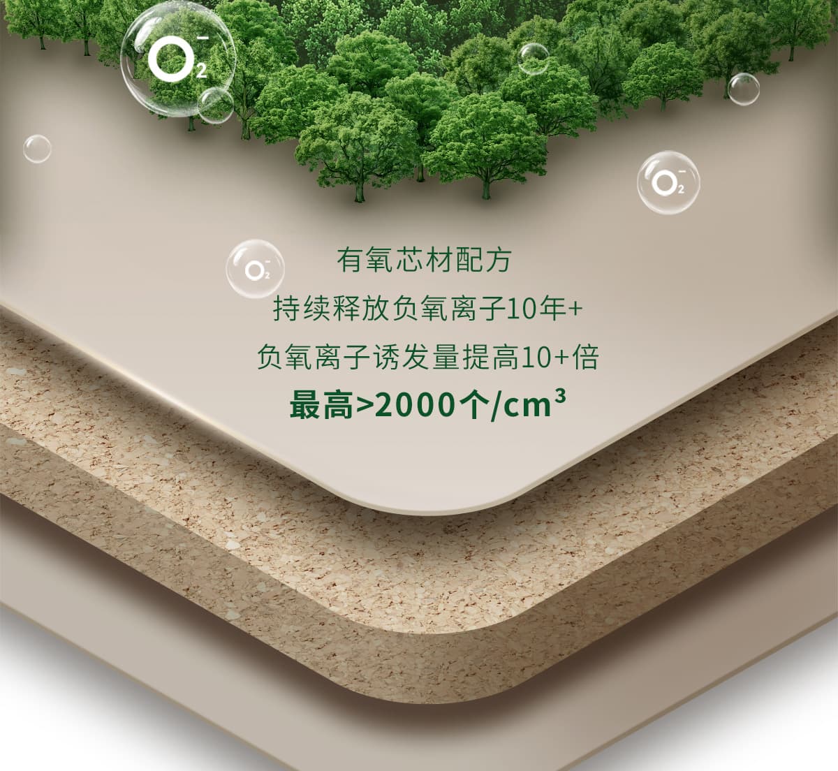 誘發空氣負離子量 比基礎環境提高10倍+