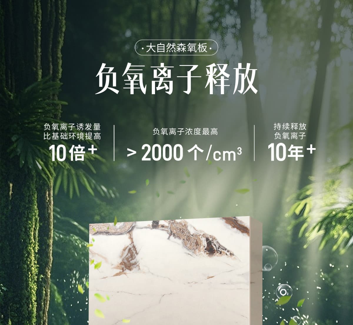 誘發空氣負離子量 比基礎環境提高10倍+