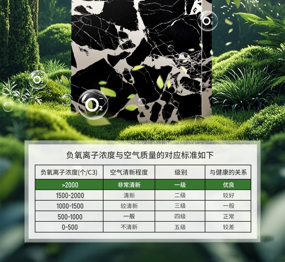 誘發(fā)空氣負(fù)離子量 比基礎(chǔ)環(huán)境提高10倍+