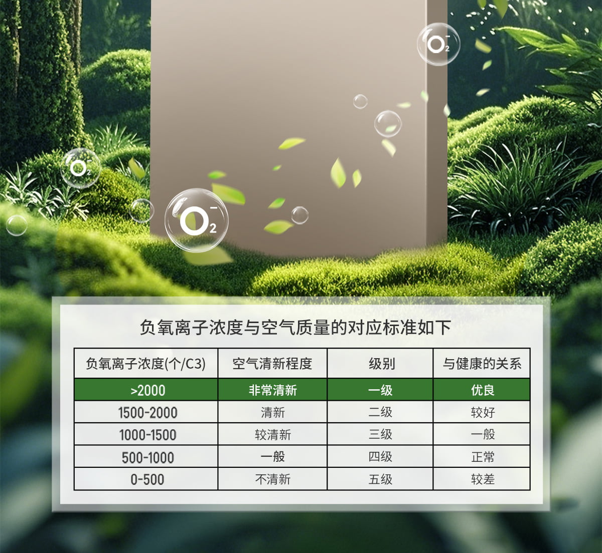 誘發(fā)空氣負(fù)離子量 比基礎(chǔ)環(huán)境提高10倍+