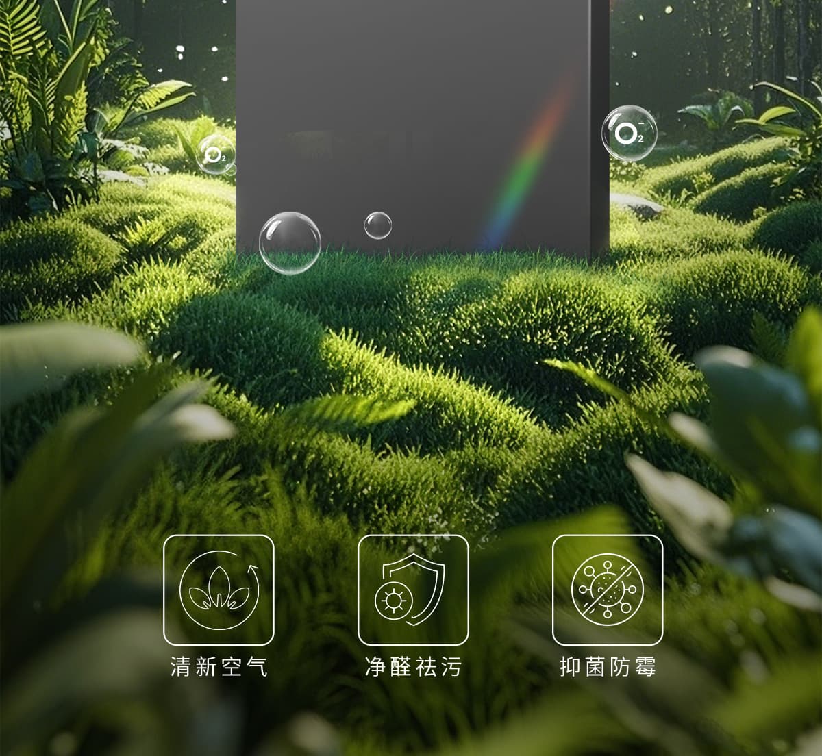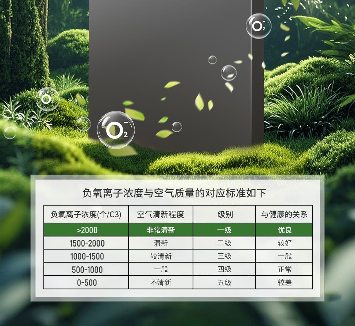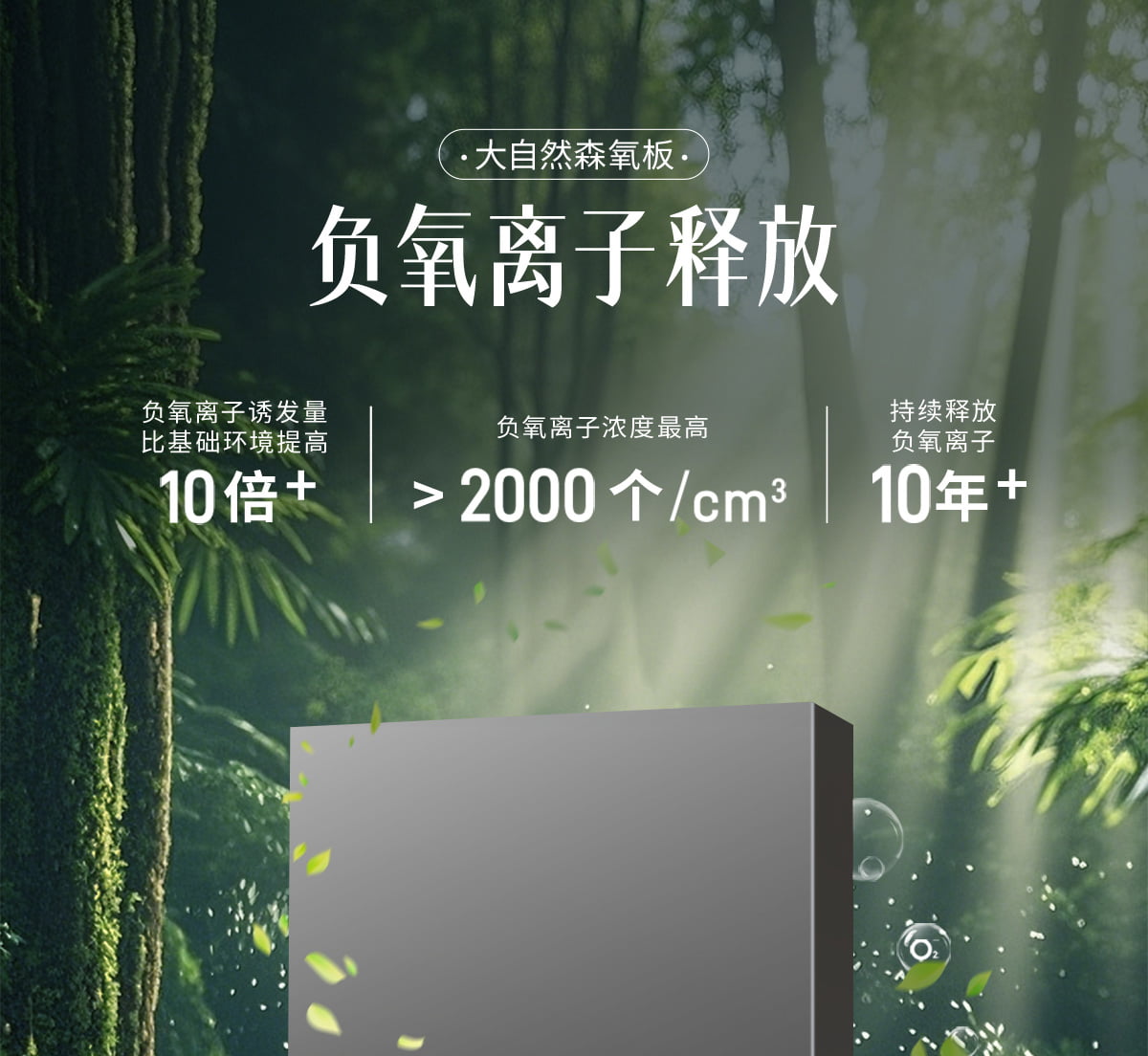 誘發(fā)空氣負離子量 比基礎(chǔ)環(huán)境提高10倍+